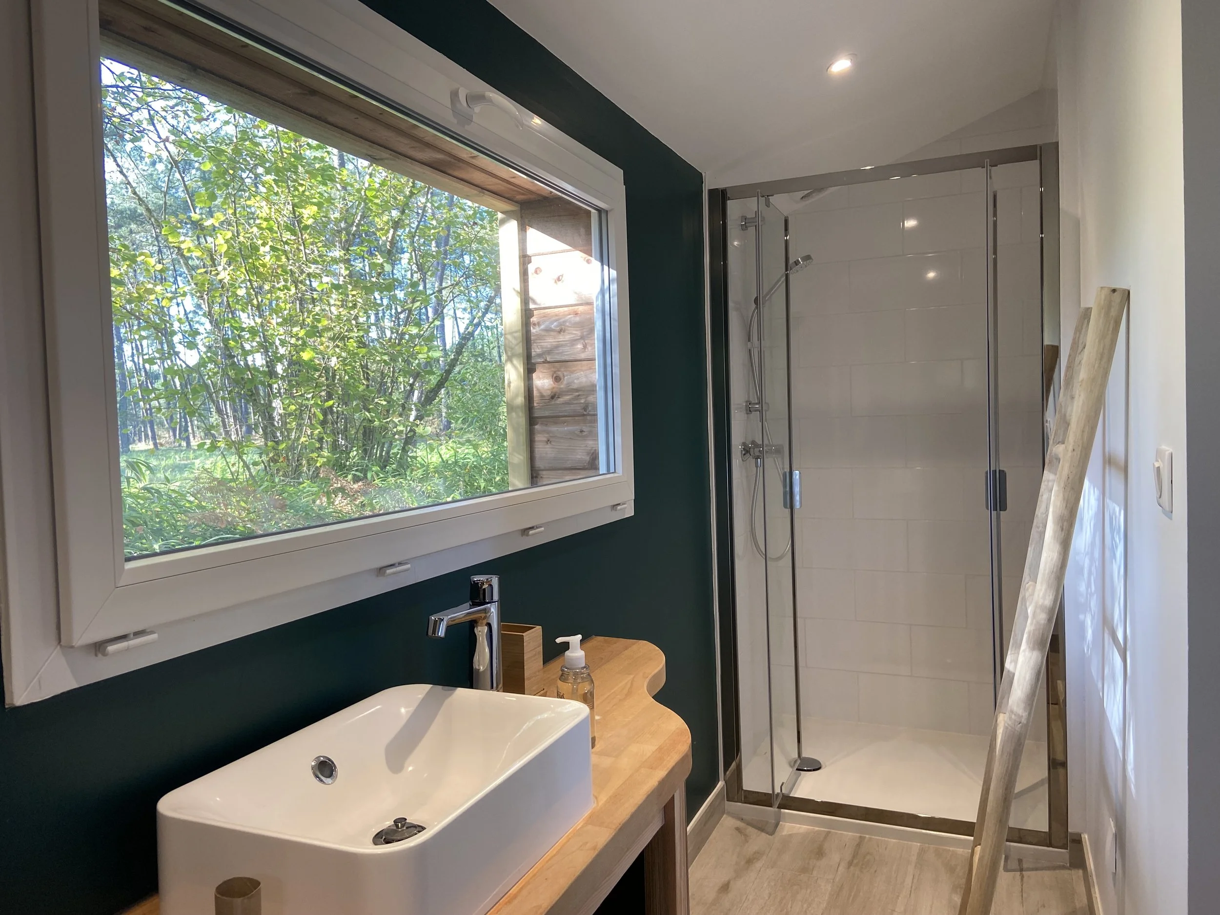Vous pourrez aussi profiter d’une petite terrasse privative donnant sur la forêt.